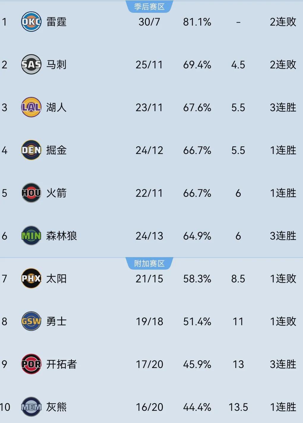 迄今为止约基奇伤停的四场比赛,掘金战绩为2胜2负,本赛季至今球队以24胜12负位列西部第四,落后23胜11负的湖人、25胜11负的马刺,以及30胜7负的雷霆。